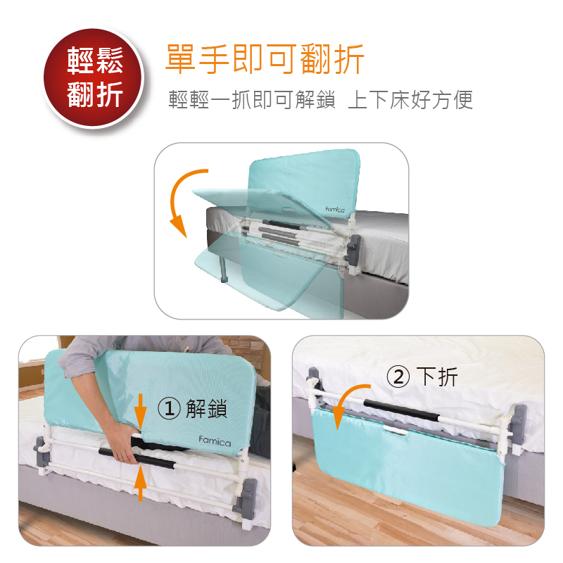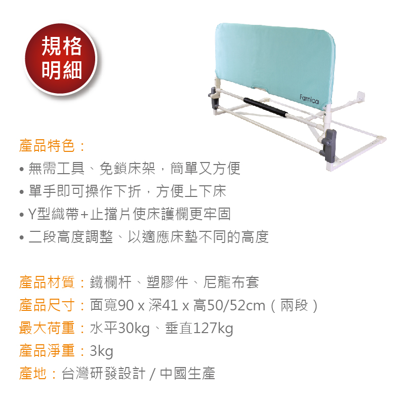 Height of bed rail can be adjusted to 2 levels (High: 52cm and Low: 50cm).
