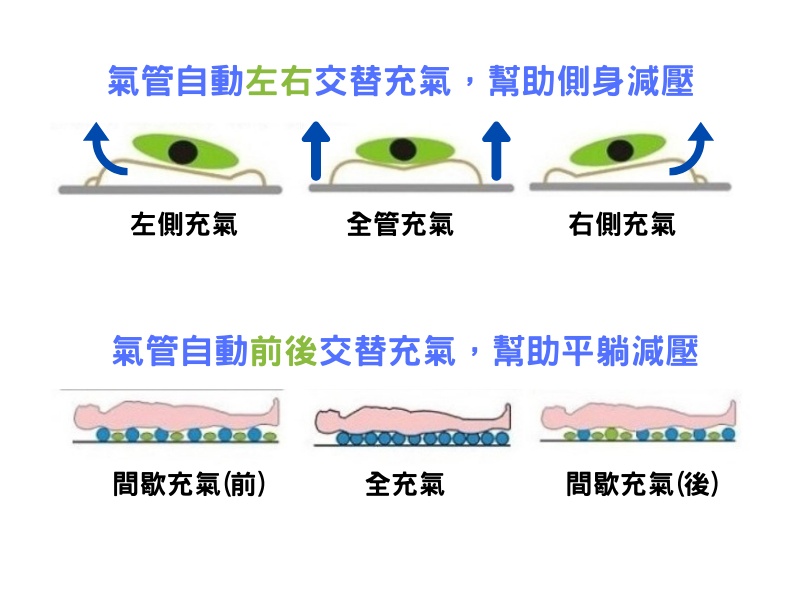 - 8°傾斜左右交替氣管,減輕照顧者替患者轉身次數