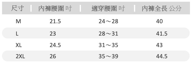 • XL/ 24.5" waist, 31~35" waist, 43cm inseam