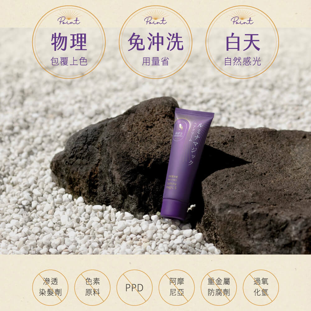 Natural Discoloration of White Hair No Need to Wash after Applying. Going out Conveniently Right After Applying in the Morning. Various Plant Extracts, such as Seaweed, Yellow Gentian, added, Covers and Protects Hair, Hair becomes Shiny and Smoother