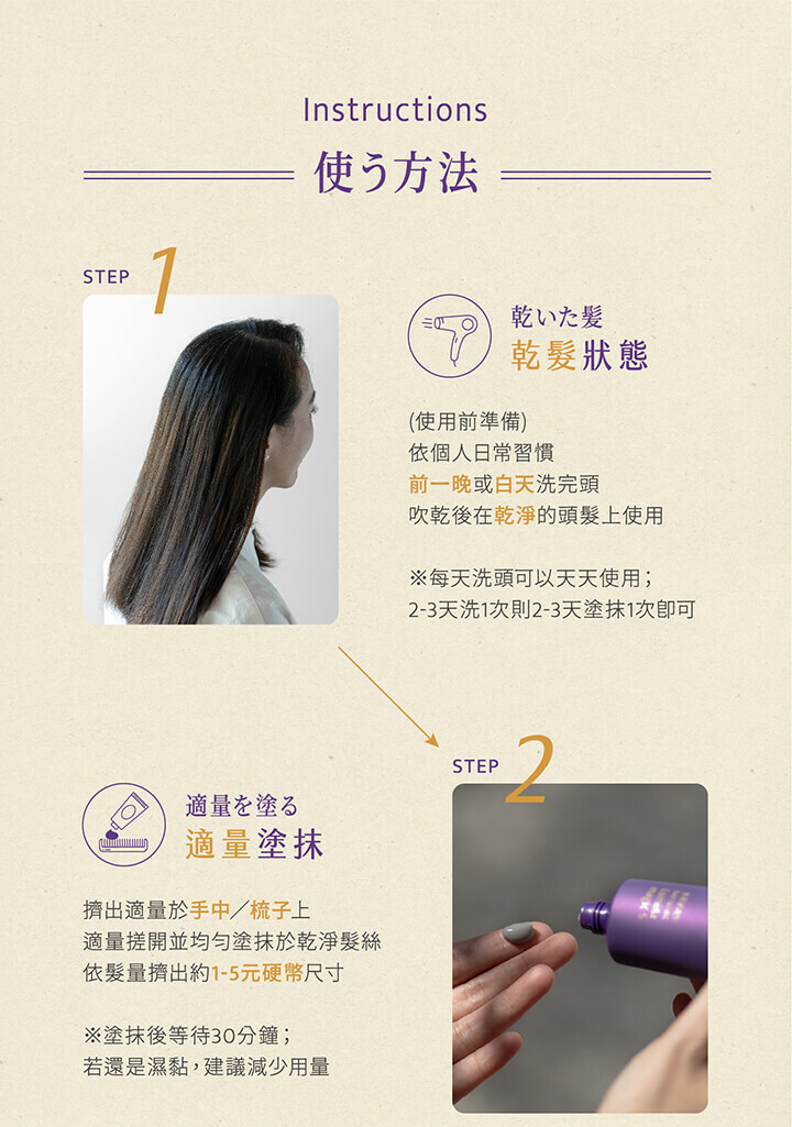 It is originally a conditioner, use the appropriate amount, the hair becomes clean after 30 minutes applied, no needed to wash! But natural light is needed during the daytime.