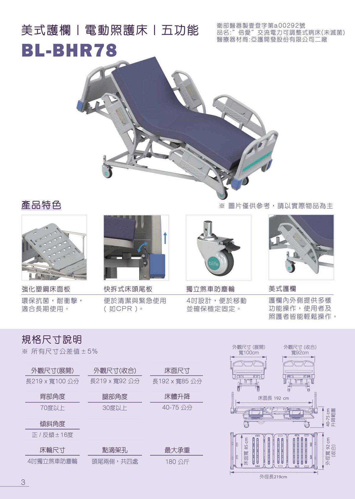4. 具床體背部/腿部/床身昇降、床體傾斜功能。