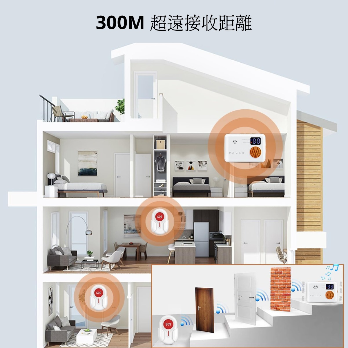 低電量提醒 - 接收器和呼叫按鈕都有此功能,確保您不會錯過任何求助呼叫
