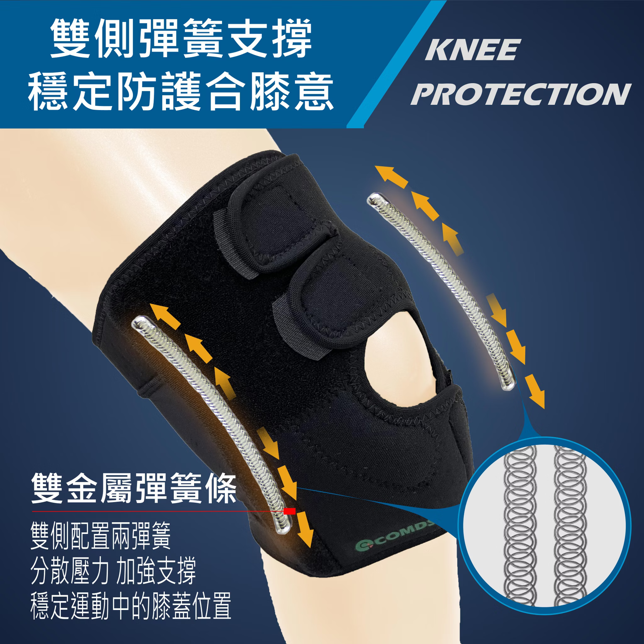 【康得適】「纖薄」開放式護膝 膝蓋受傷支撐保護 雙彈簧條半月型墊片固定