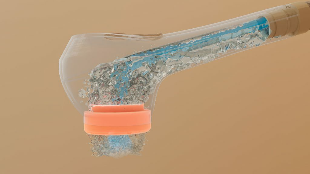 When the sponge head is pressed against the skin, a sense of pressure is formed and water is automatically discharged. At the same time, the handheld shower head lights up (water is discharged and heated simultaneously)