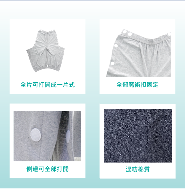This product is designed and manufactured in Taiwan, made of 100% pure cotton, and is a blessing for caregivers and the elderly. The pure cotton fabric is soft and comfortable, and the easy-to-use button design allows caregivers to easily dress and wash the body, making the body feel refreshed and comfortable.