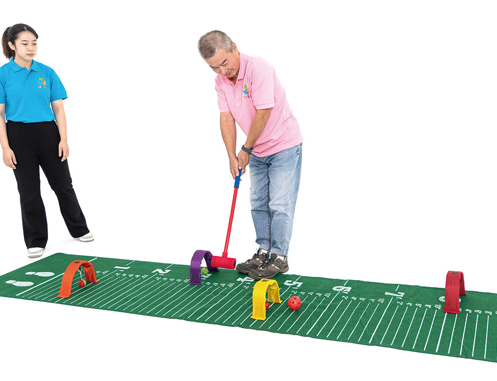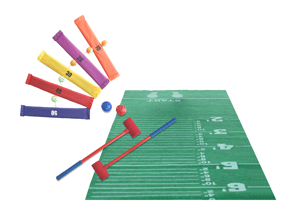 由球桿、U形山洞、地墊組成,可揮桿打擊球體通過 U形山洞,或是單獨利用地墊,進行地板動作,這是一項適合家庭與三五好友相聚時,非常棒的休閒運動器材。