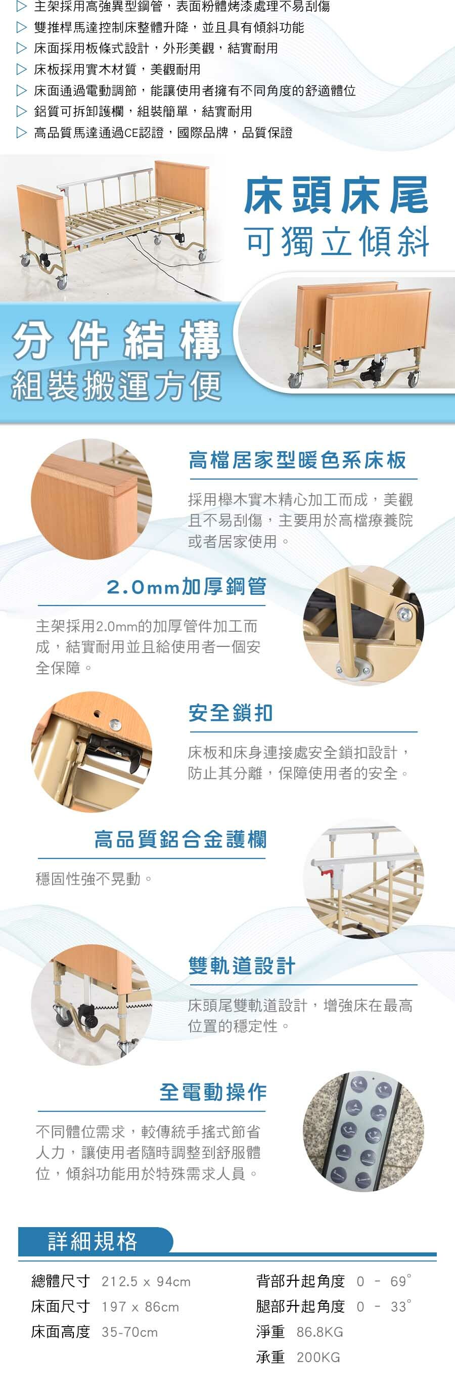 ◆ Double actuator motor controls the overall lift of the bed, and has a front and back tilt function