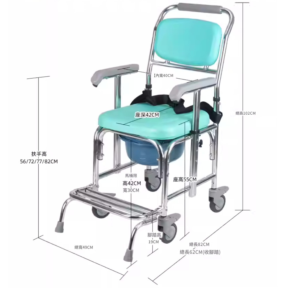 - 較一般便椅窄身,門闊只需超過50CM便可進出