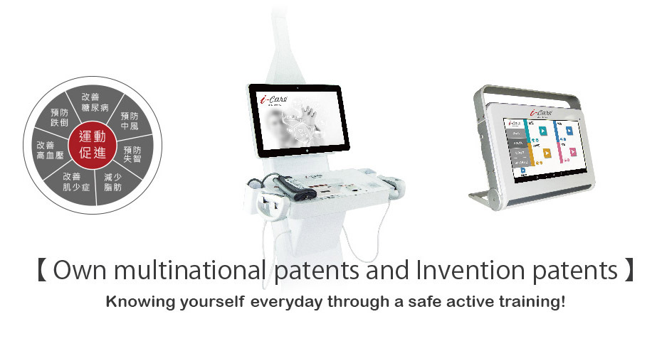 iCare physiological measurement system: blood pressure measurement system (Blood Pressure), blood oxygen measurement system (Blood Oxygen), grip measurement system (Grip), sit-to-stand measurement system (Sit To Stand), walking measurement system (Walk), height detection (Height), body composition measurement system (Body Fat)