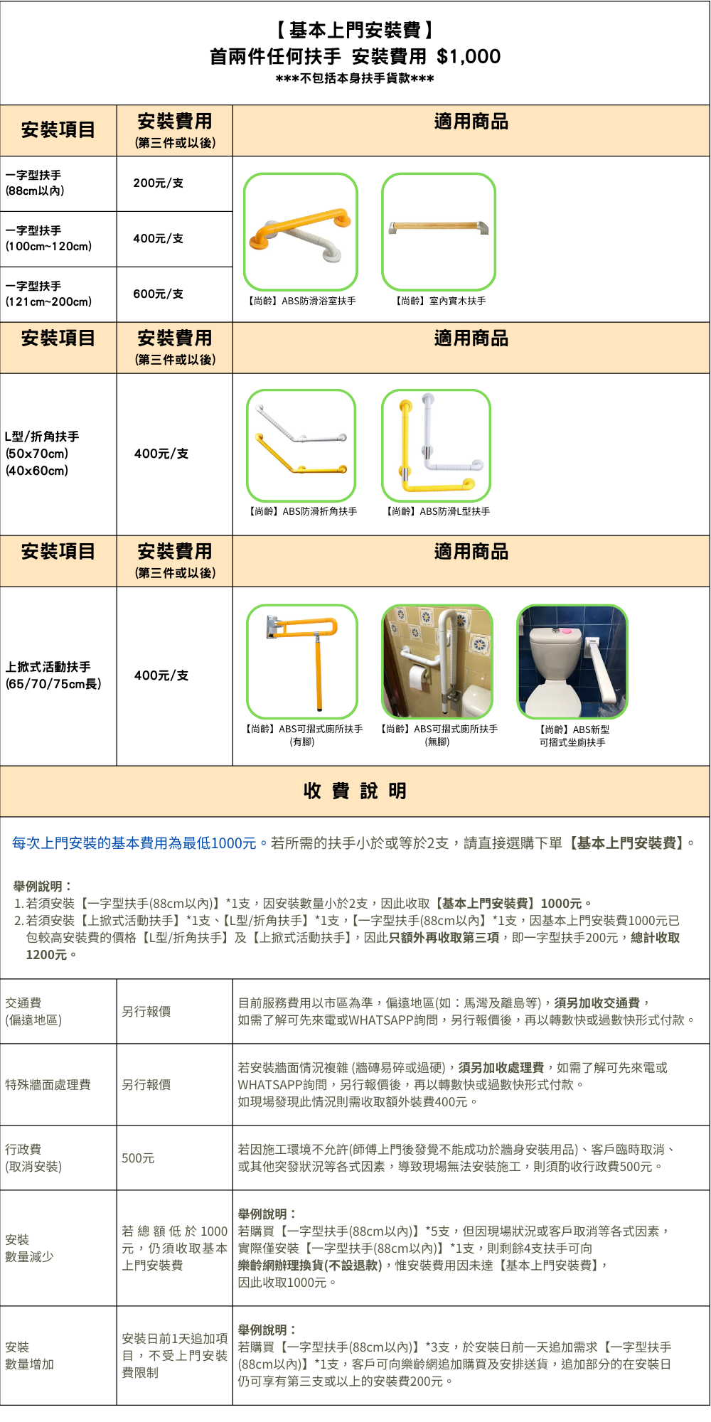 [First two handrails installation fee: $1,000]
