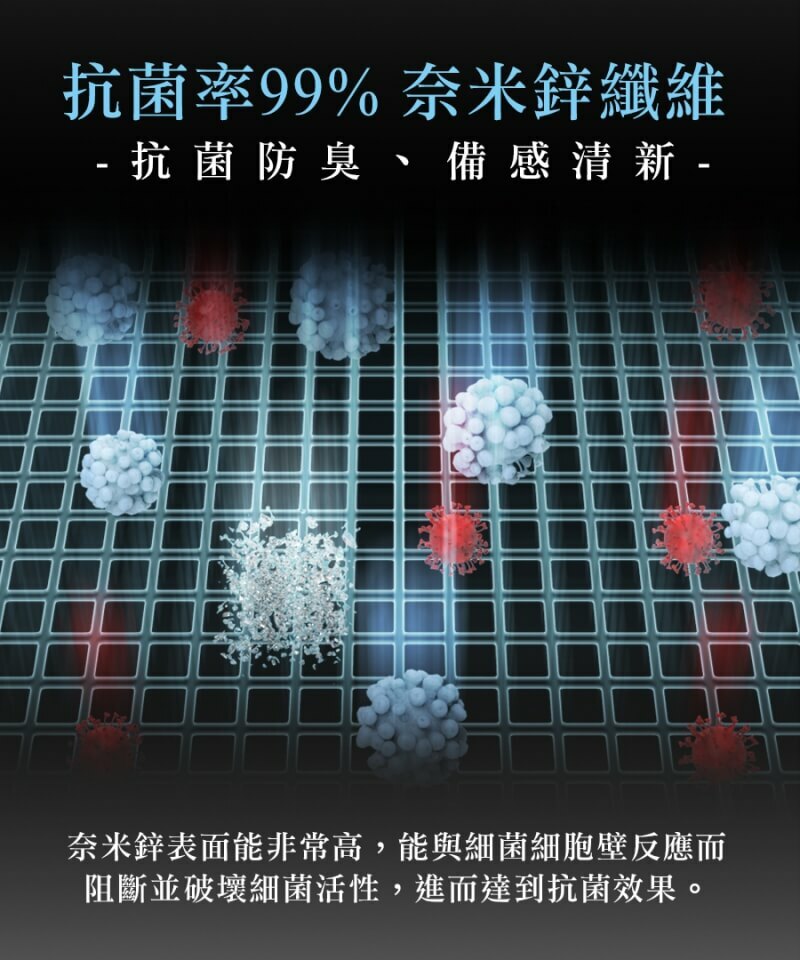 ◆ 99% Antibacterial Nano Zinc Fiber, Antibacterial and Deodorizing, Fresh Feeling