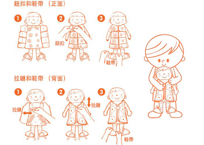 此款功能和【學易樂】2合1自理訓練布偶 相同!只是尺寸較小,提供不同的需求選擇。