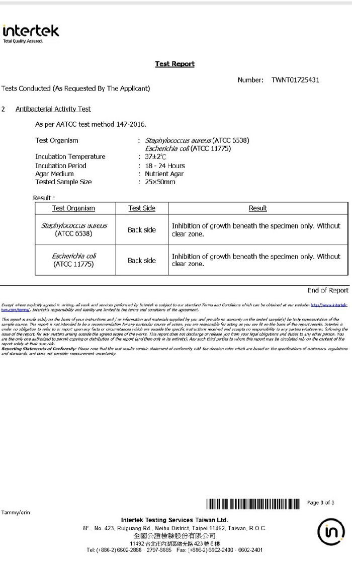SEK antibacterial test passed, maintaining antibacterial effect after washing more than fifty times.