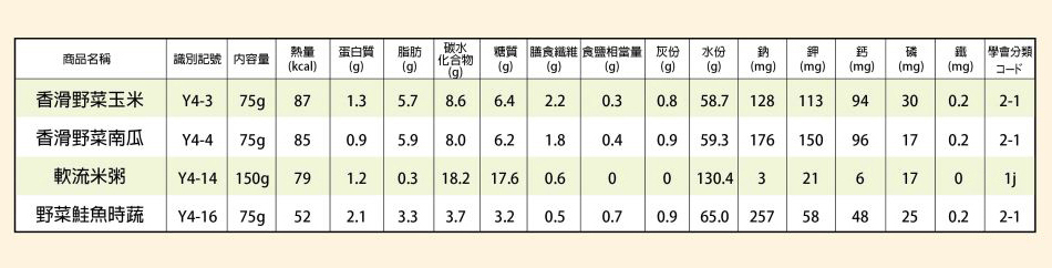 Y3-47 Vegetable Egg Rice Porridge Nutrition Facts