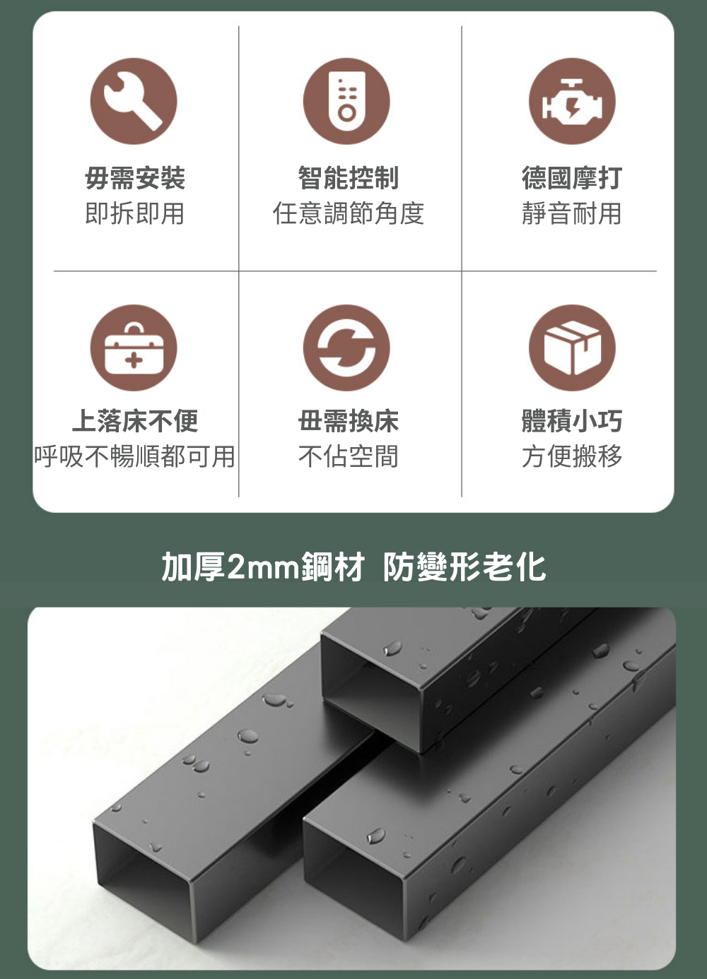 既有電動床效果,但比一般電動床褥更方便,直接放係舊床架及床褥上,而且比醫療護理床更經濟實惠。