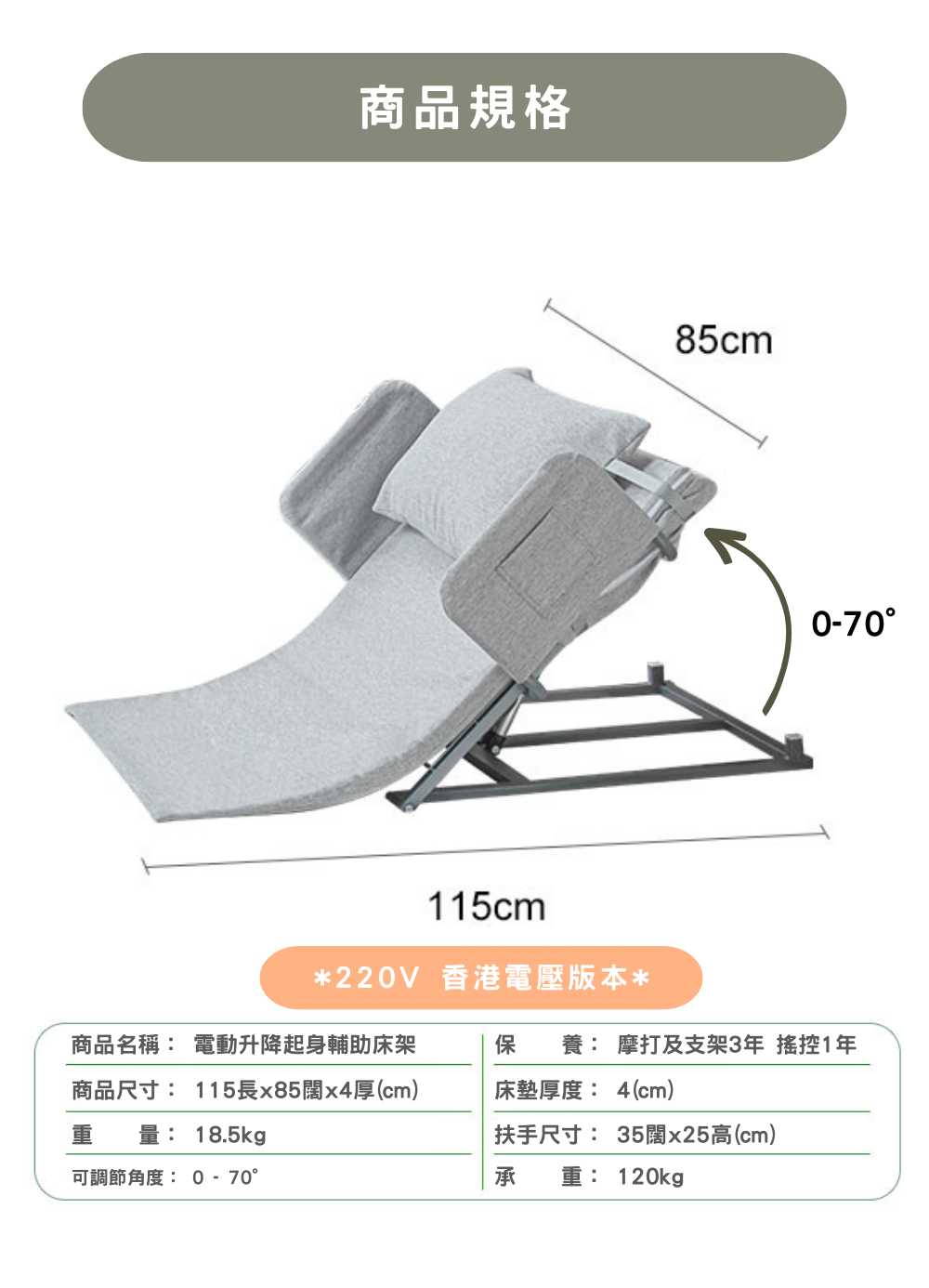 無論係起居上落床、床上用餐、睇報紙電視、午睡小休,都能夠輕易滿足唔同的需求。