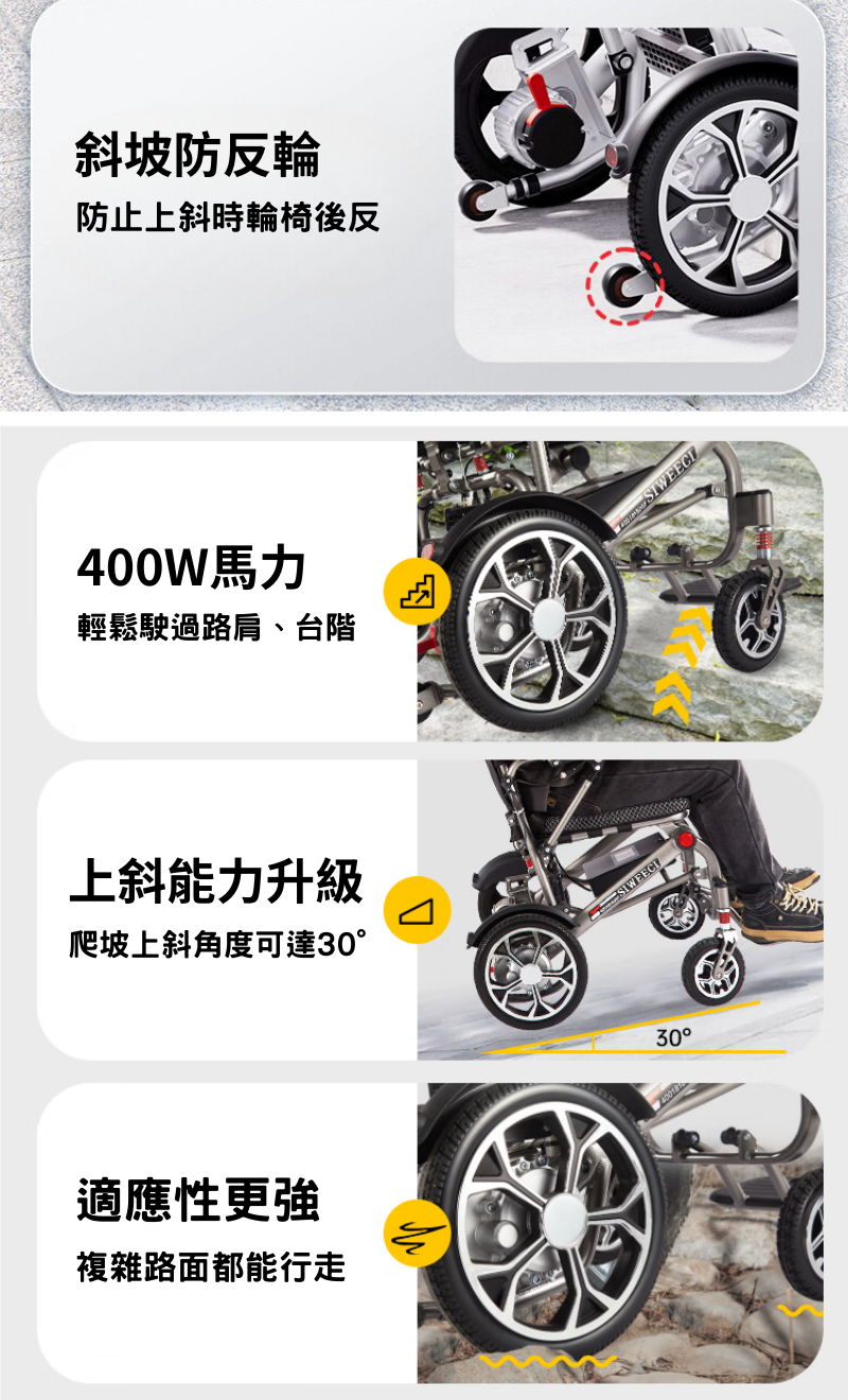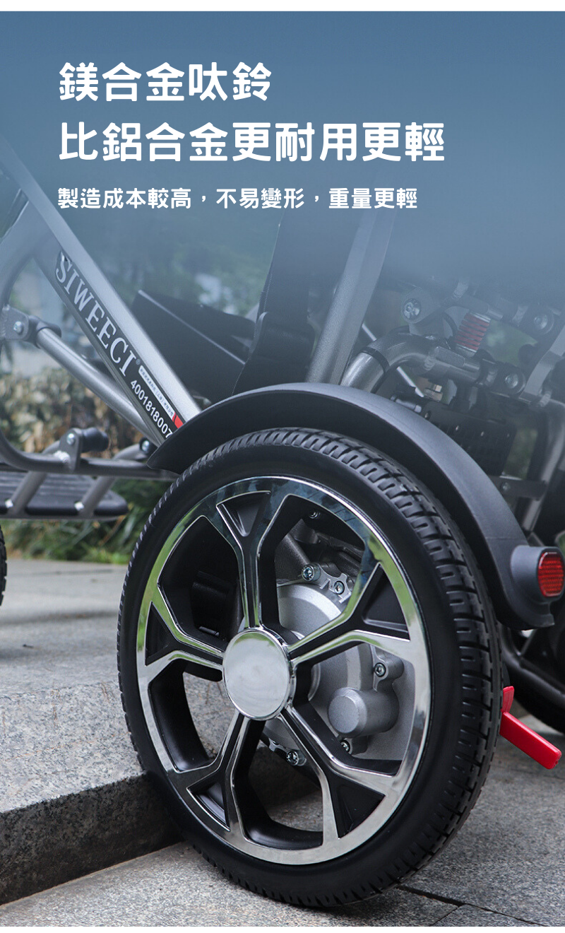 ■ Solid magnesium alloy wheels, durable and puncture-proof