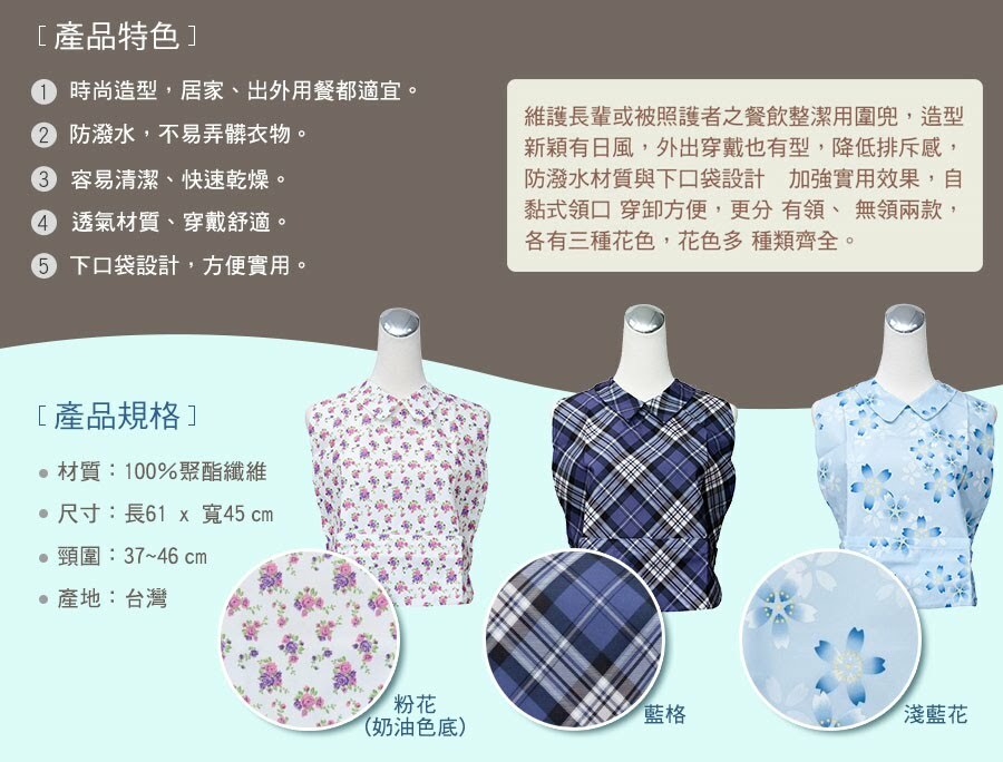 • 本產品乃口水肩,維護長者或被照護者之餐飲整潔用