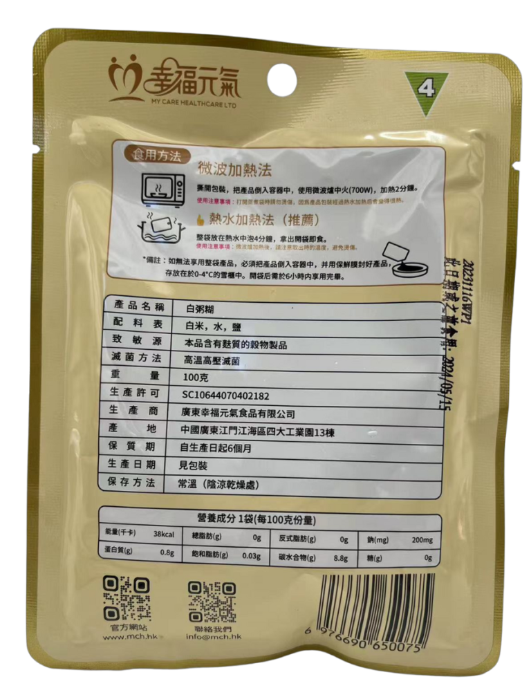 成份: 白米,水,乾瑤柱,蝦米,鹽