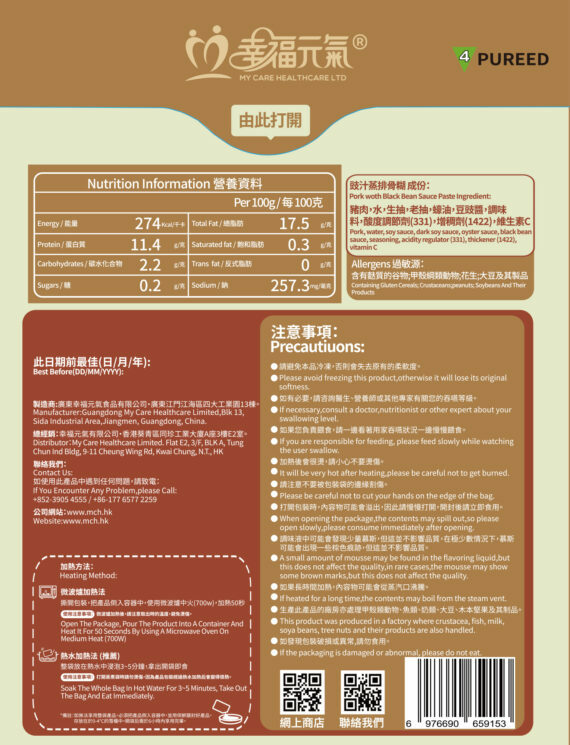 成份:豬肉,生抽,老抽,蠔油,豆豉醬,調味料,維他命C,酸度調節劑(331),增稠劑(1422)