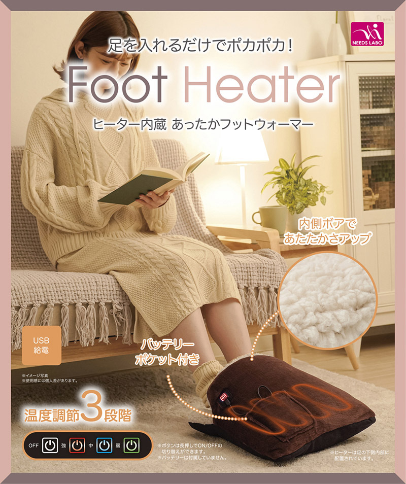 樂齡網推薦【NEEDS LABO】USB發熱保暖腳墊,五層保暖結構,開啟30秒後即迅速感覺溫暖,強中弱三段溫控調節,將雙腿暖呼呼地包覆住,不論是看電視、睡覺等居家日常生活皆適用!