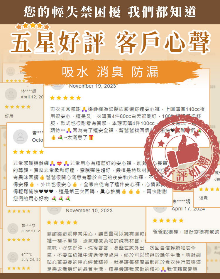 - 輕微失禁/尿滲的婦女使用,可吸水100cc