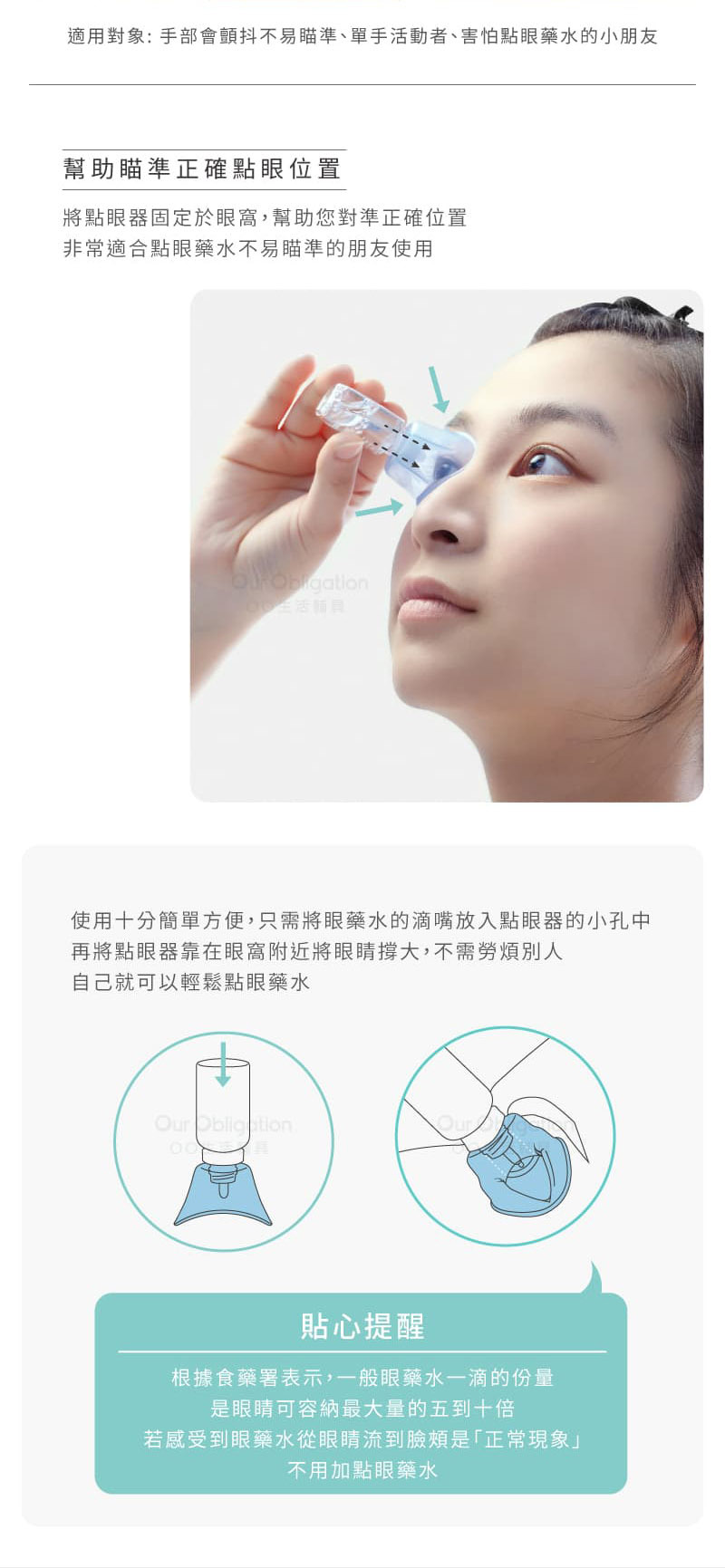 ●適用市面上大多數尺寸的眼藥水