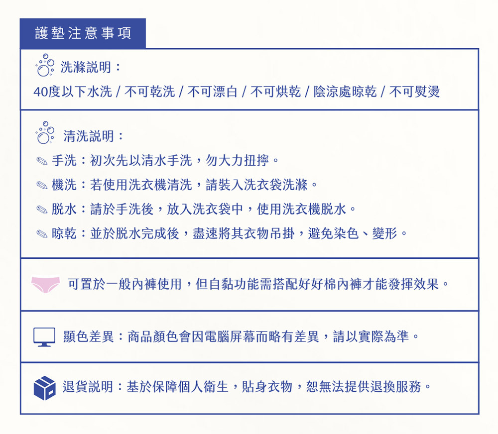 ***須購買『布護墊』及『專用內褲』搭配使用,才能發揮自黏功能***