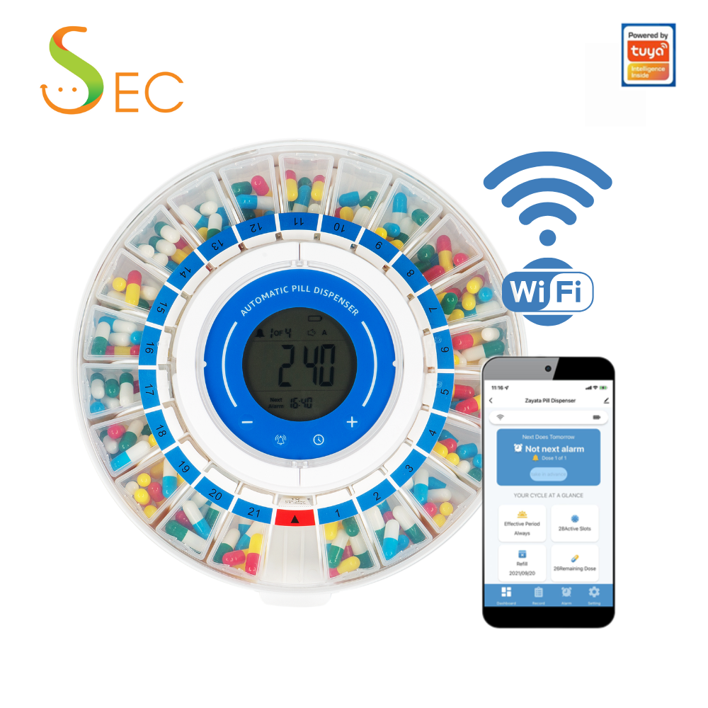 最新21格WIFI全自動提醒響鬧設計- 自動轉盤電子響鬧藥盒。