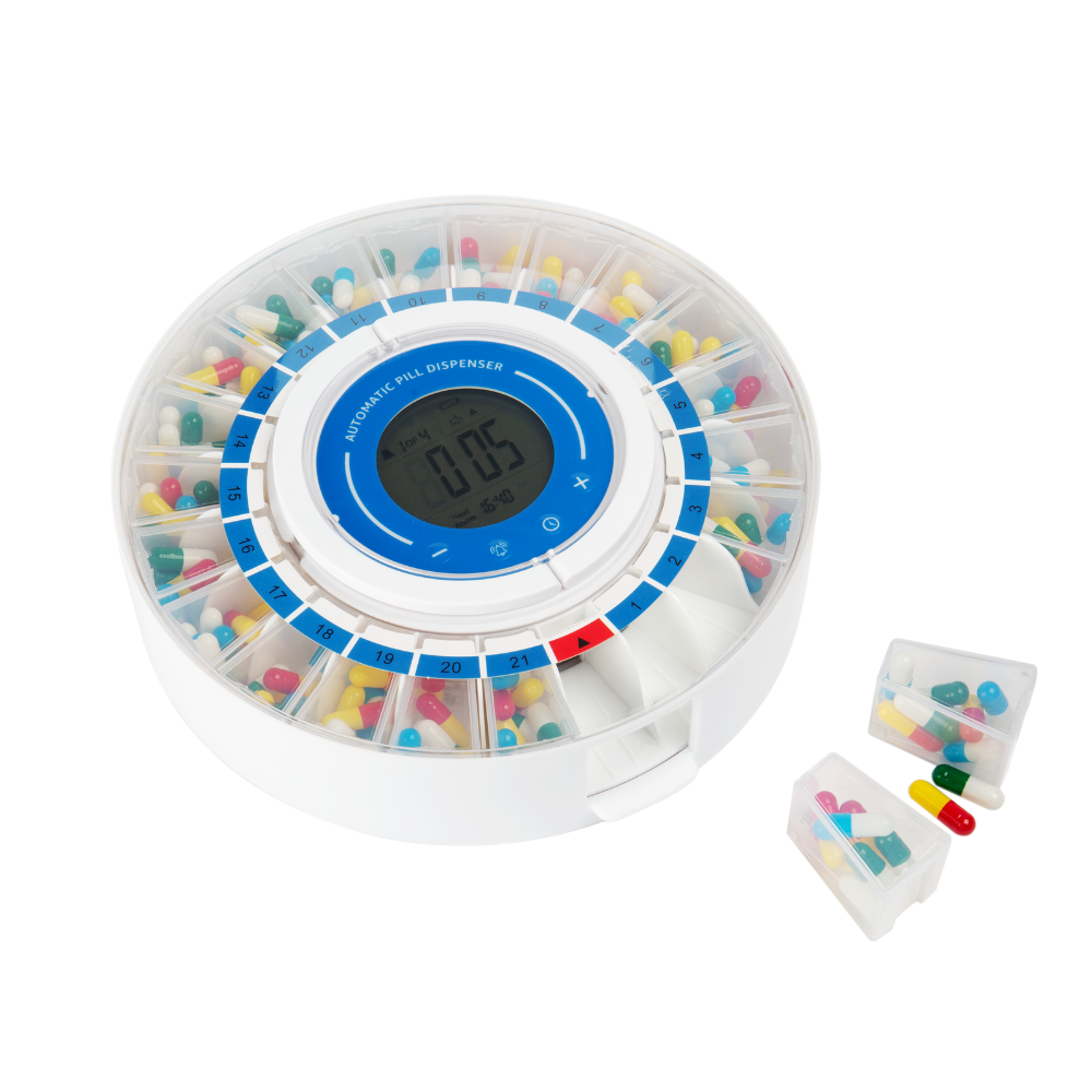 2. 藥盒轉盤設有21格,足夠4至7天藥物儲備。
