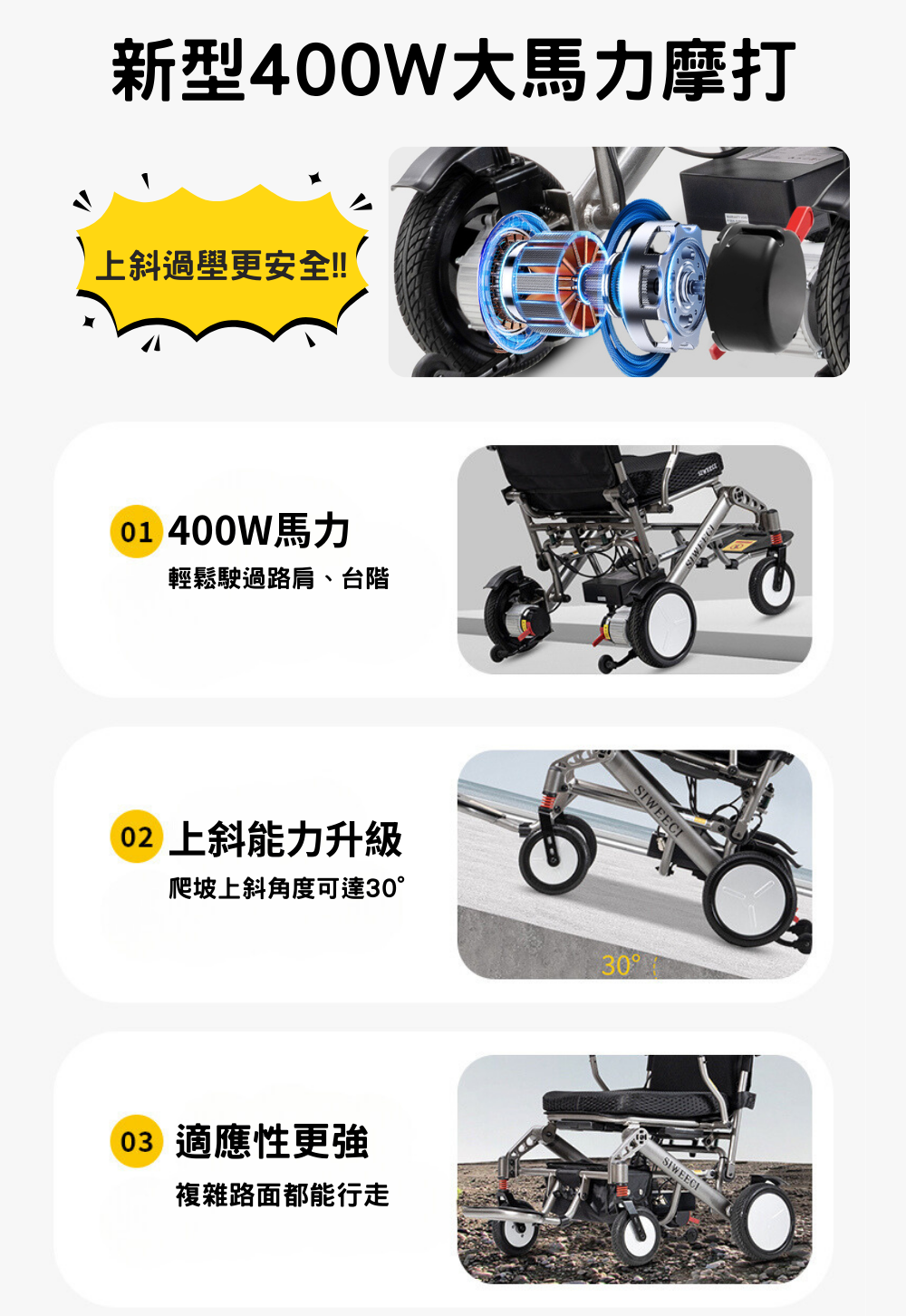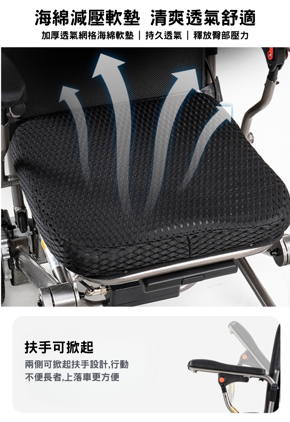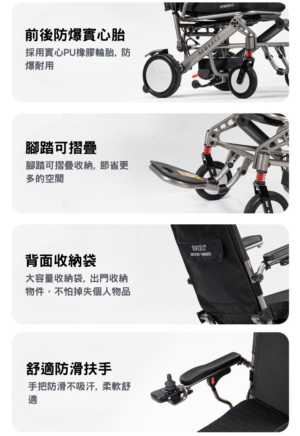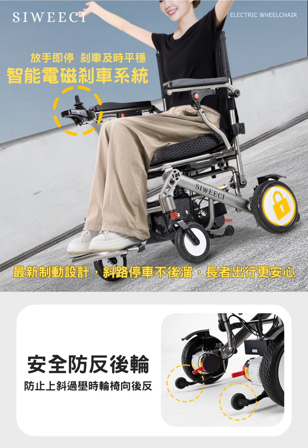 ● The entire vehicle is equipped with an anti-tip design to prevent tipping backward, making it safer when going uphill.