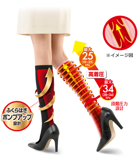 - Pressure Value: Ankle: Maximum 34 (28-34) hPa / Calf: Maximum 25 (19-25) hPa
