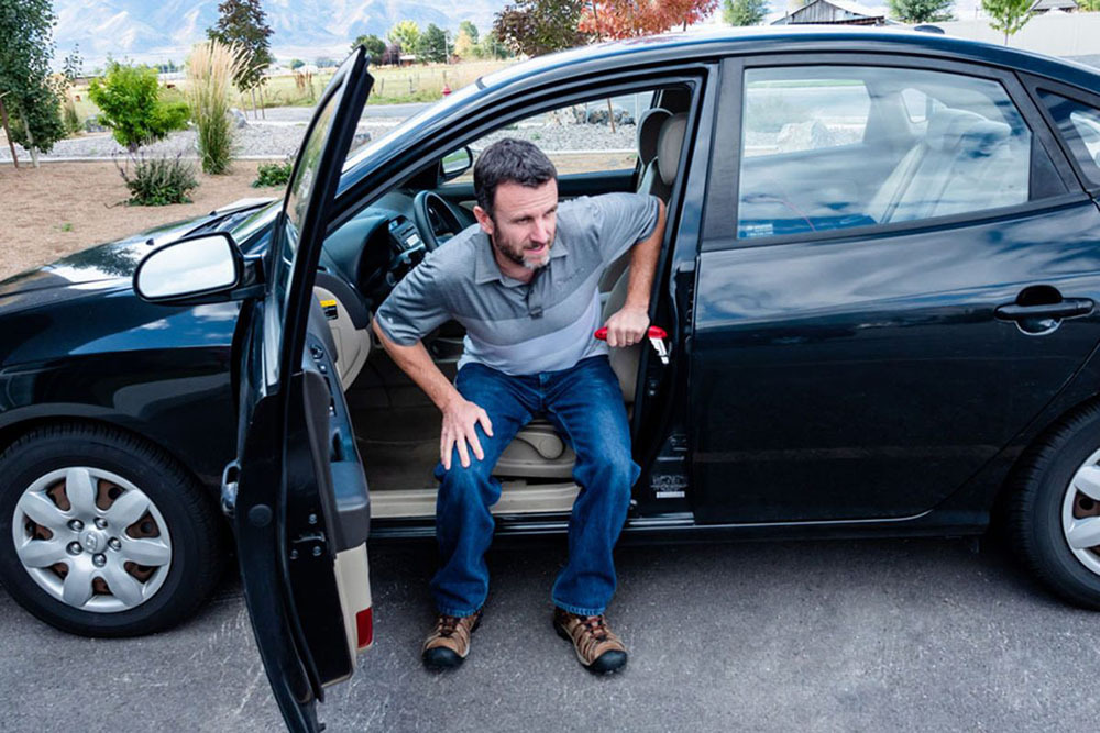 車子的狹小空間也讓要幫忙的人不容易扶持,