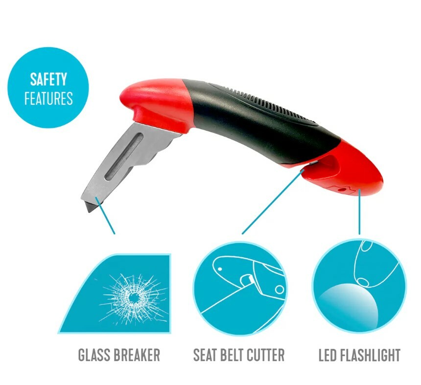 每輛車必備的安全神器,可當成緊急時安全帶切割器/車窗擊破器/手電筒及上下車扶手