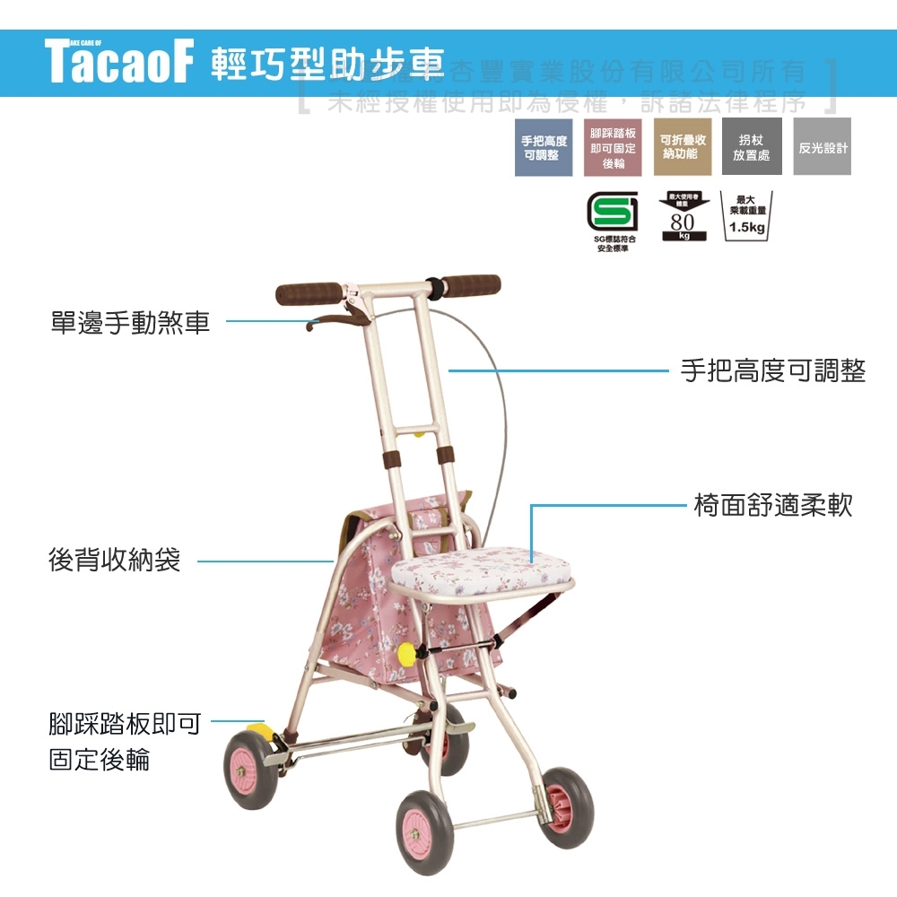 7. Handle Height: 765~905 mm (4-level adjustable)