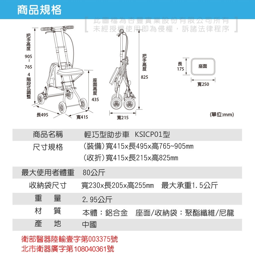 4. Folded Dimensions: Approximately 415 × 215 × 825 mm