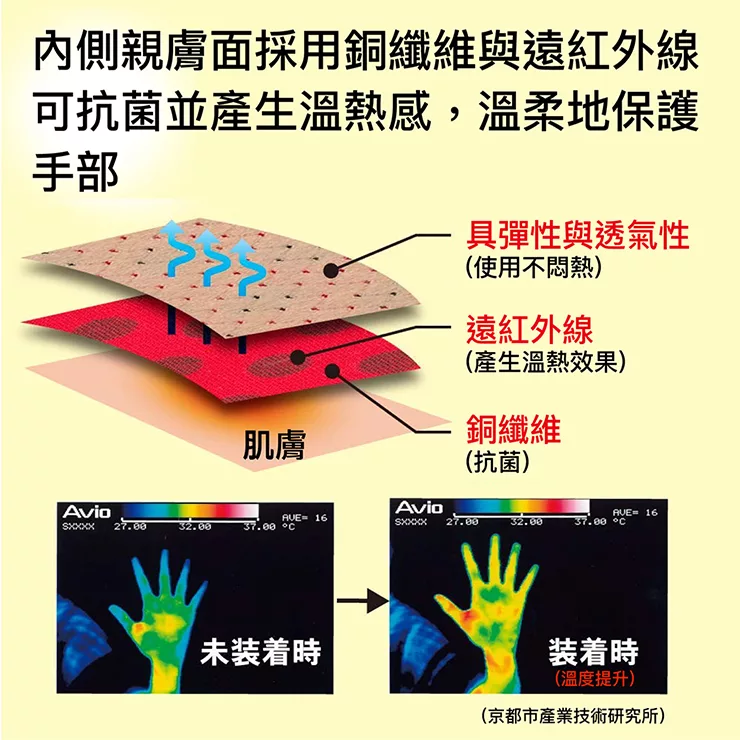 內側使用銅纖維遠紅外線素材,具抗菌溫熱效果 舒緩痛楚