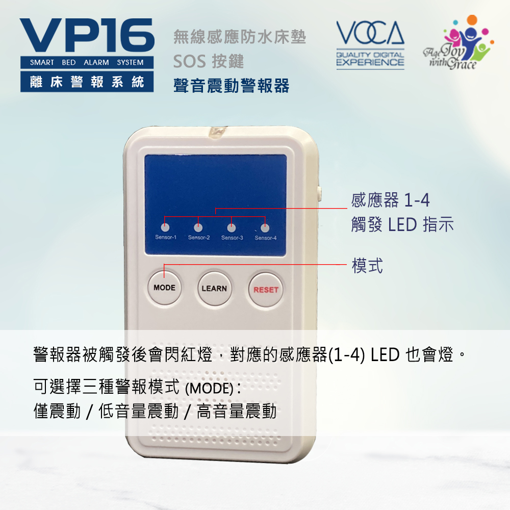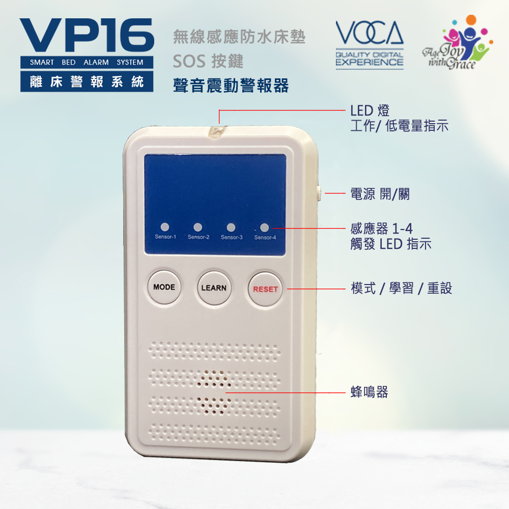 - 無線聲音震動警報器 + SOS 按鈕, 方便照顧家中長者