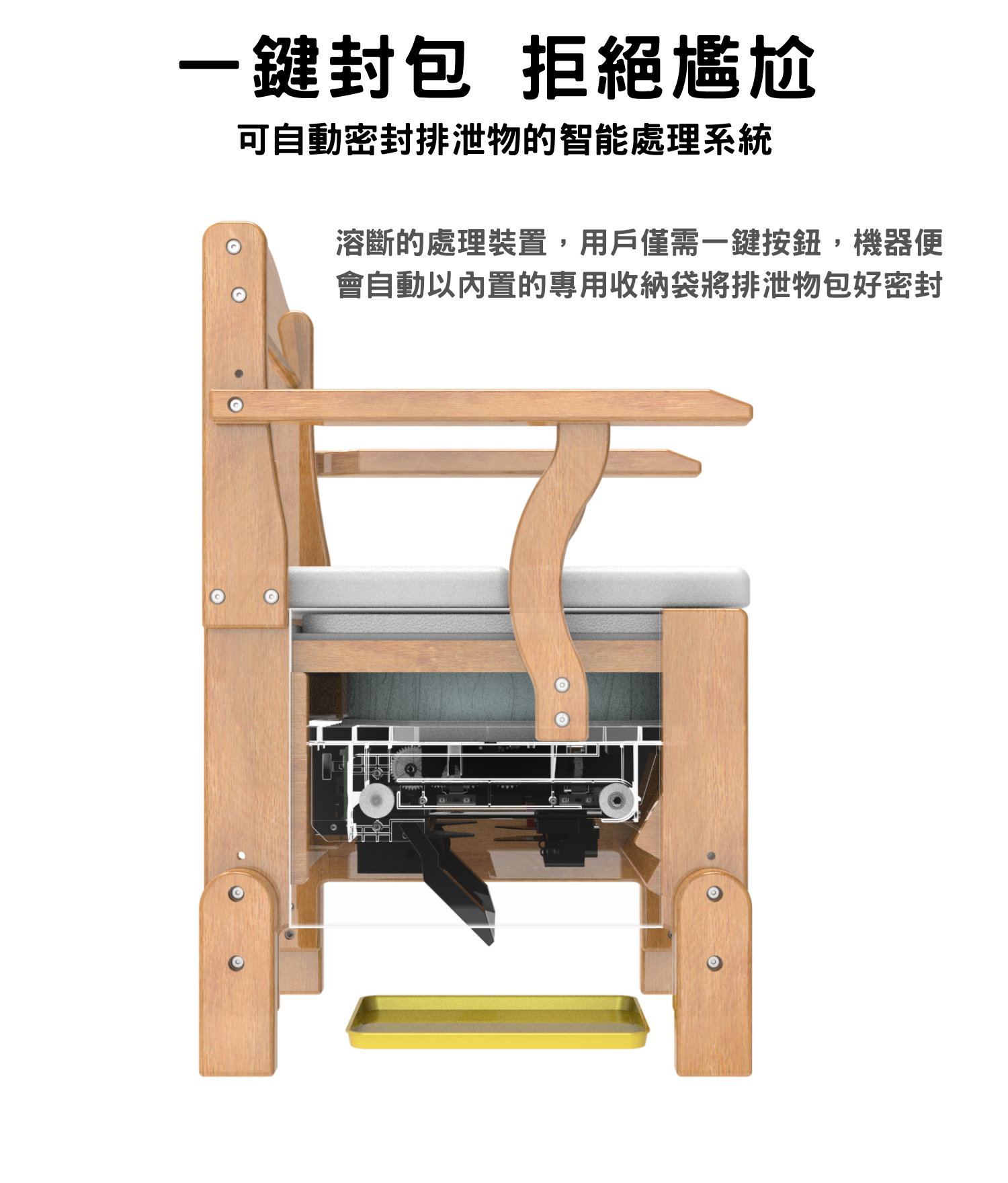 Many elders have difficulties when going to the toilet, requiring a toilet chair in their rooms, but normal medical shops sell toilet chairs that are not good-looking and easy to cause smell. These properties will cause elders to lose dignity and life quality.