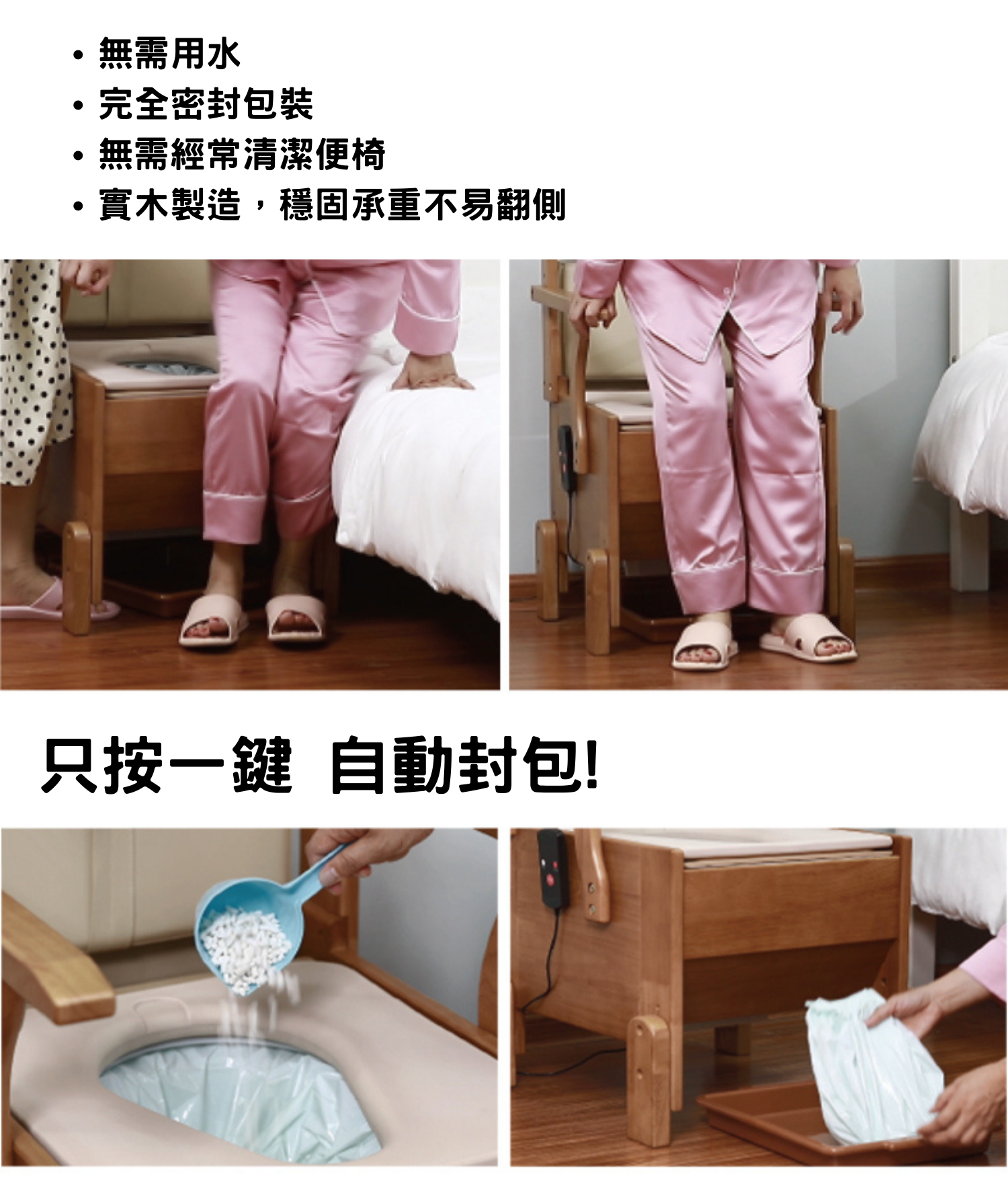 We recommend the [ShangNing] Japanese Solid Wood Automatic Packaging Toilet Chair, adopts equipment that dissolves packages, the user only needs to press a button, the machine will automatically wrap the excrete in the built-in storage bag, making it more convenient and cleaner.
