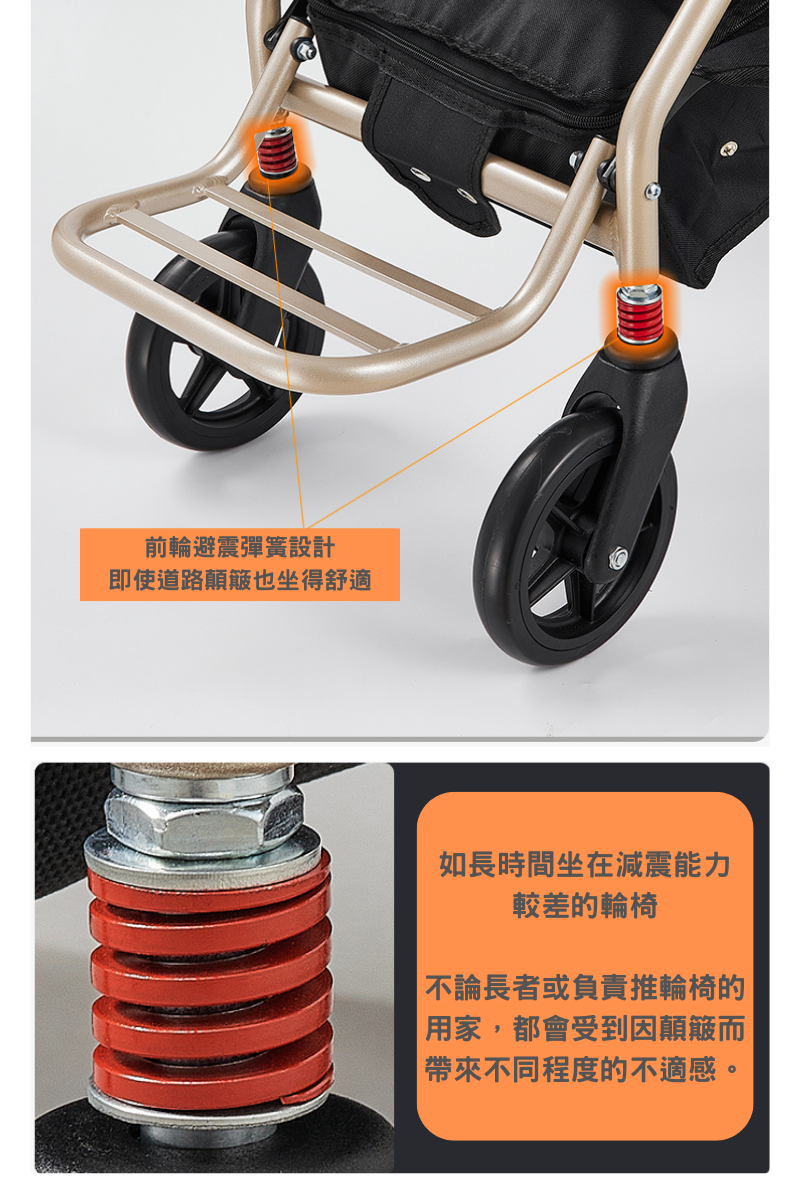 Spring-loaded front wheel, 16-inch seat width