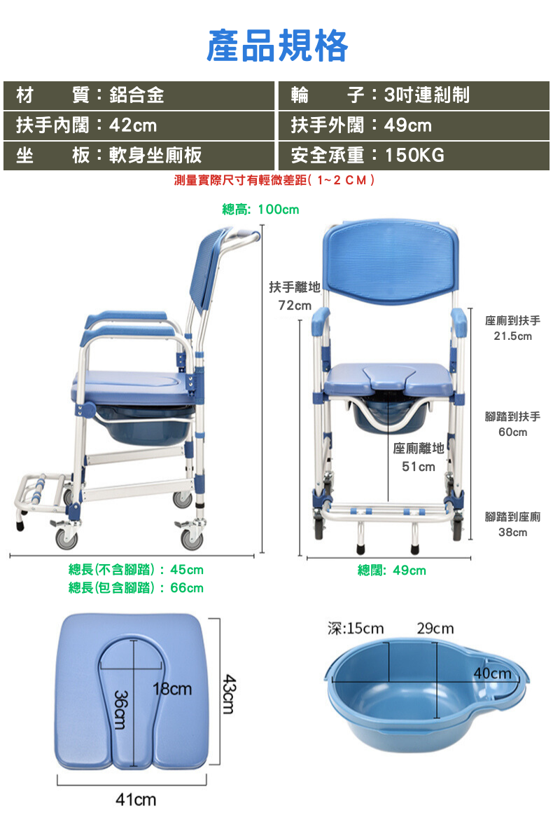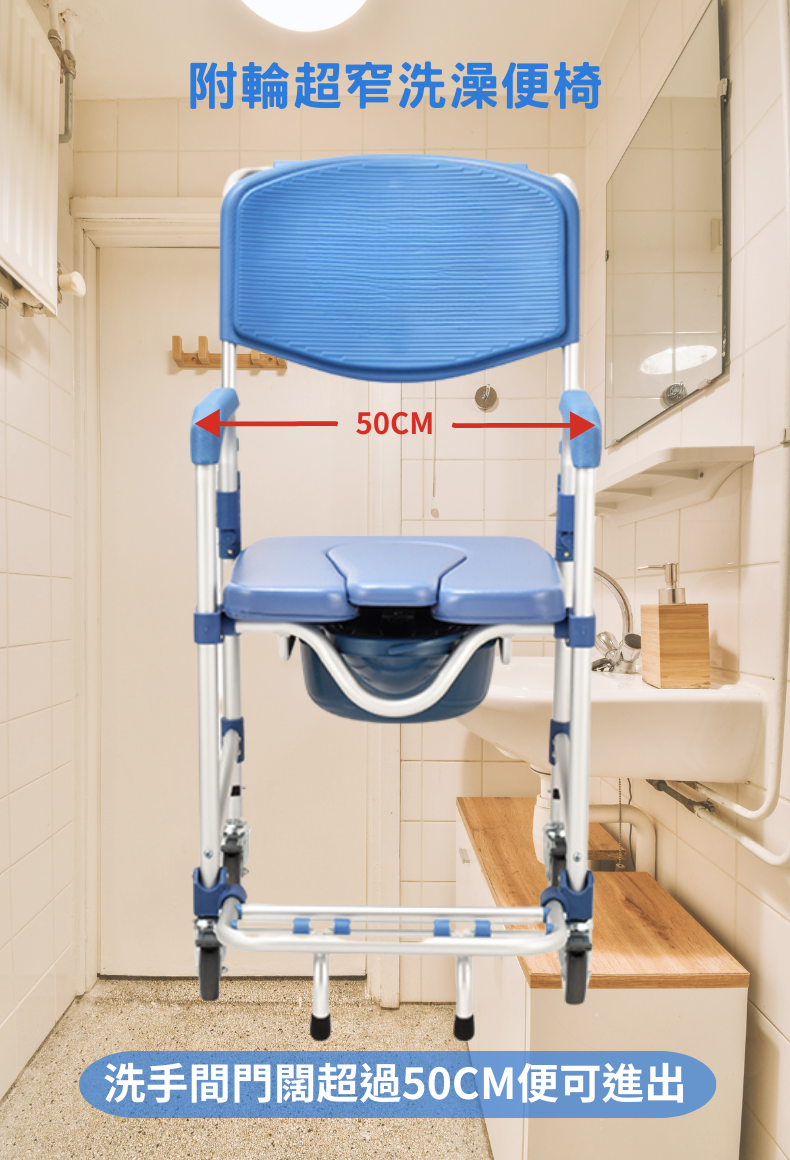 - 較一般便椅窄身,門闊只需超過50CM便可進出