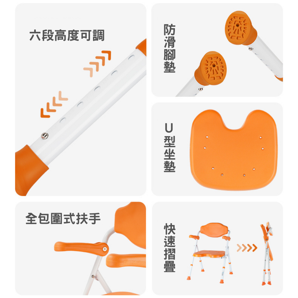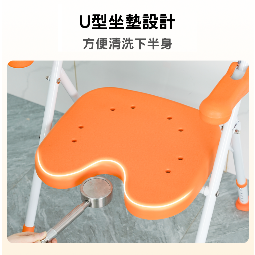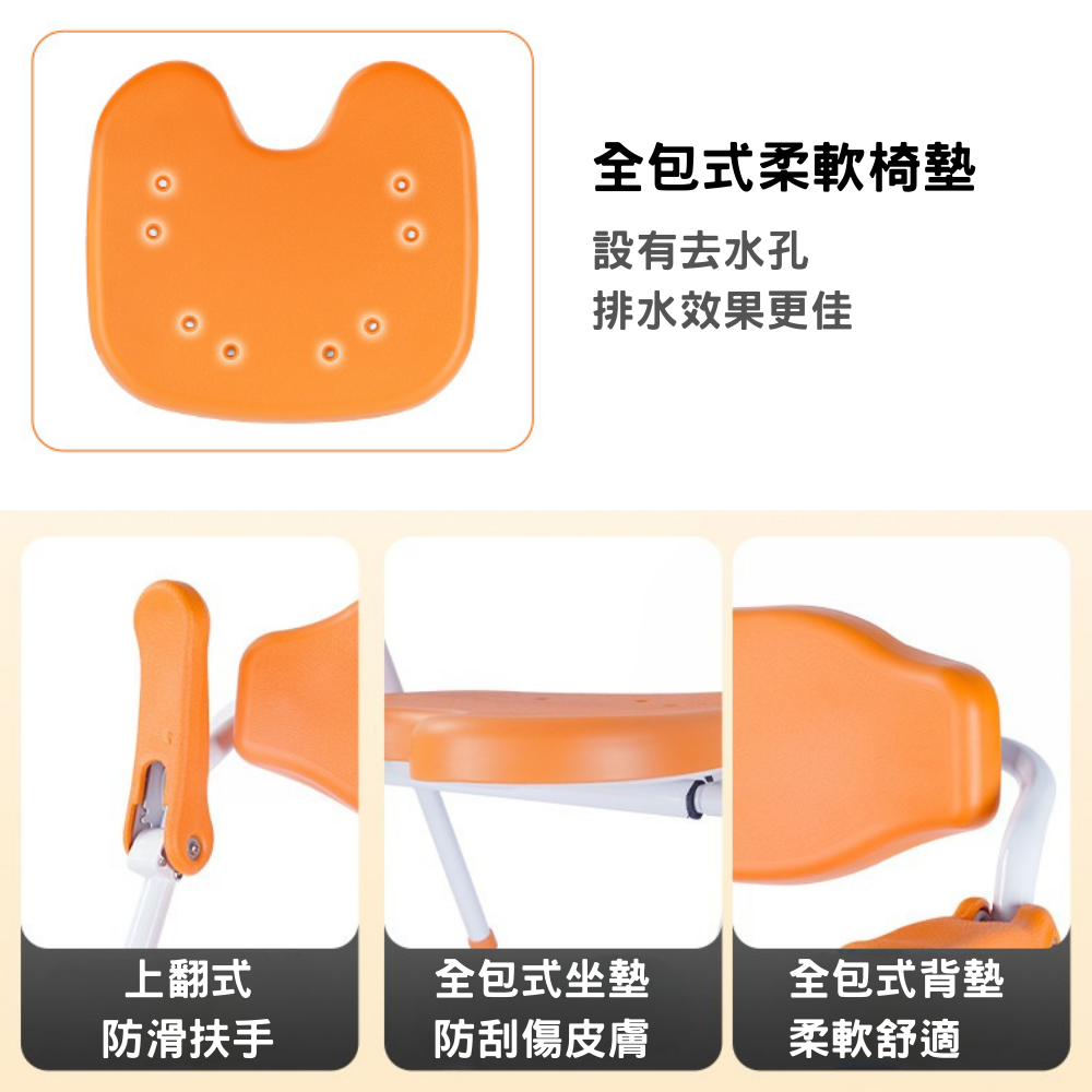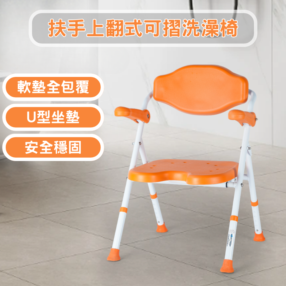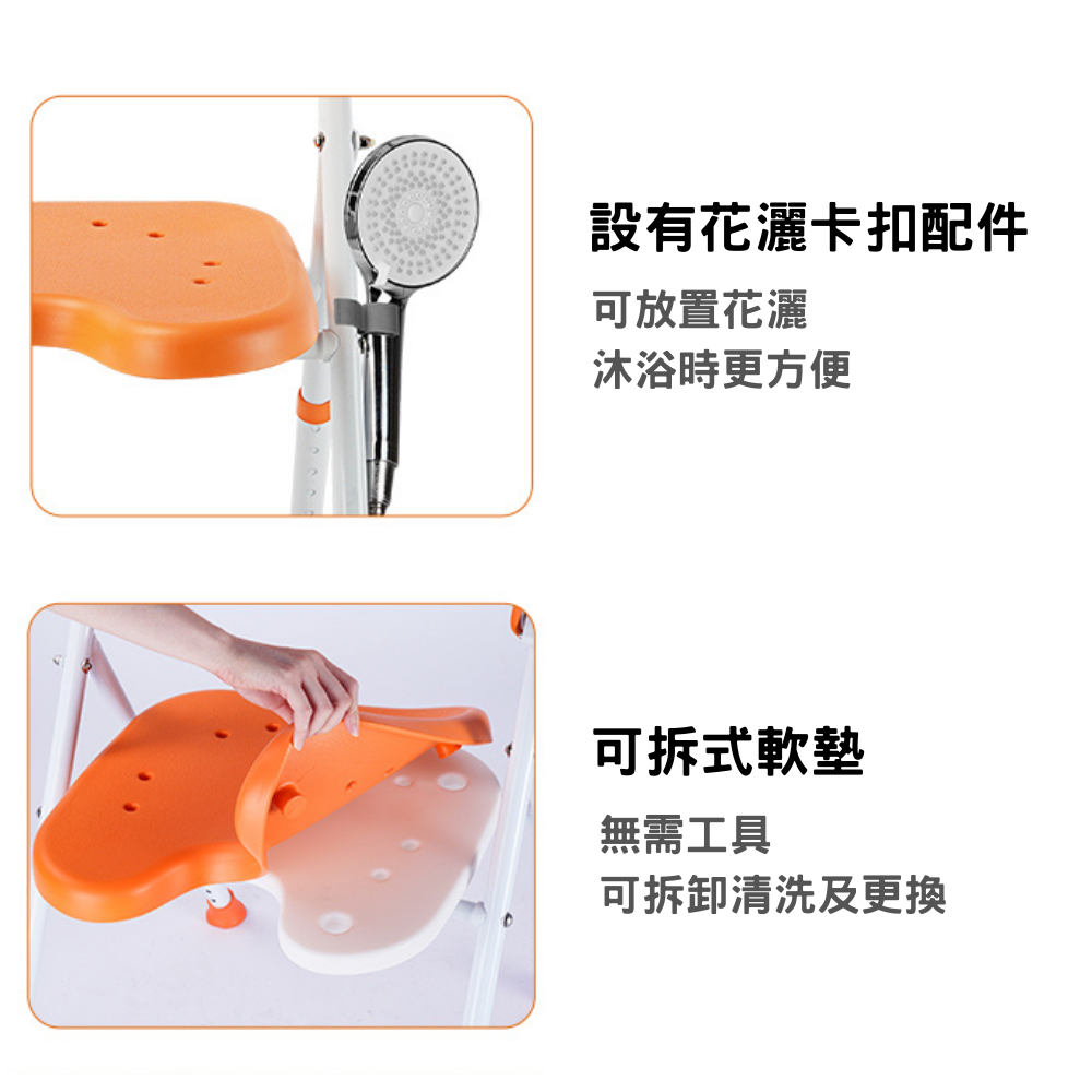 此款【YADE】扶手上翻式可摺洗澡椅 745D,新款式備有全包覆軟墊及可上翻防滑扶手、六段式高度依個人需求調整、軟墊舒適好坐,好收折收納,收納後僅15CM厚,不佔空間,是銀髮族洗澡的最佳夥伴!