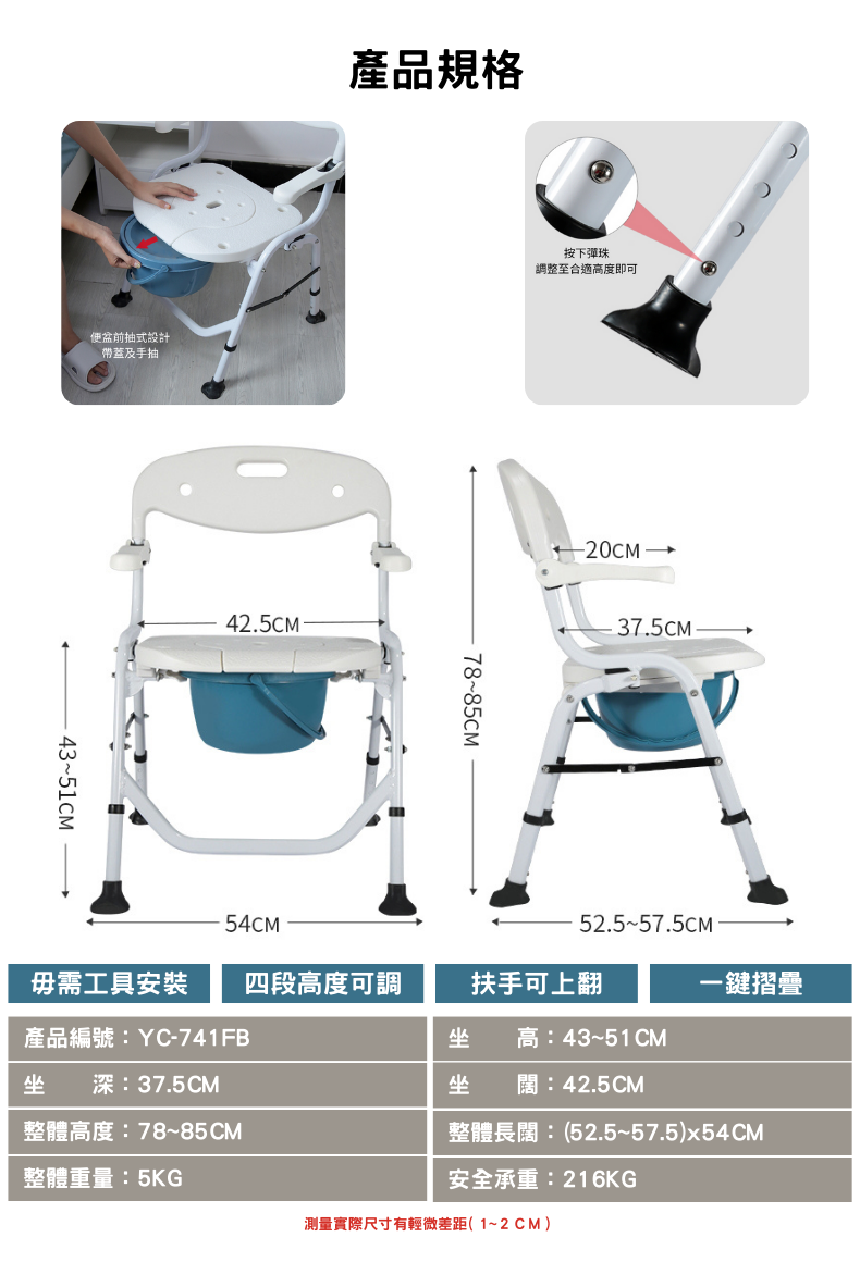 4. 底部佔地面積:(52.5~57.5cm) 長 x 54cm闊