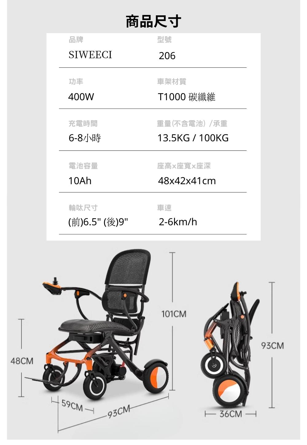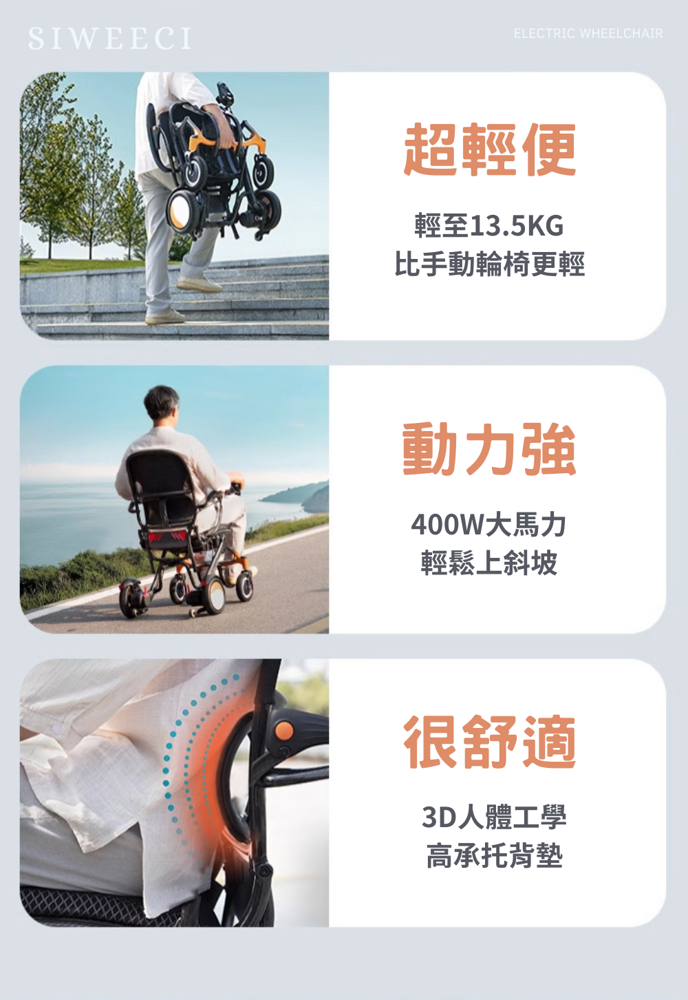 ● 整車配有防後翻設計,防止輪椅後翻,上斜更安全。