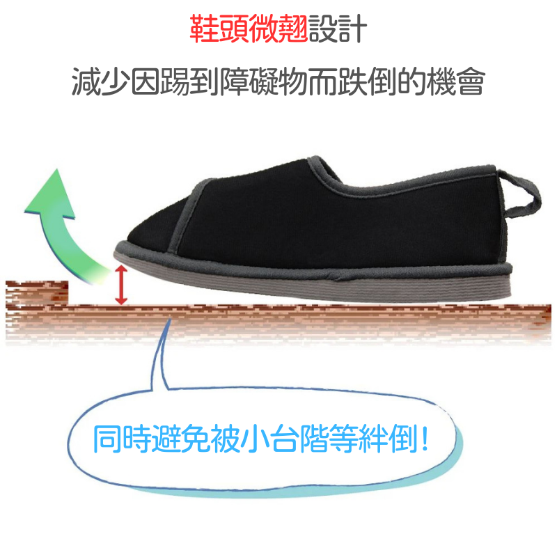 ●鞋頭微翹:減少跌倒機會