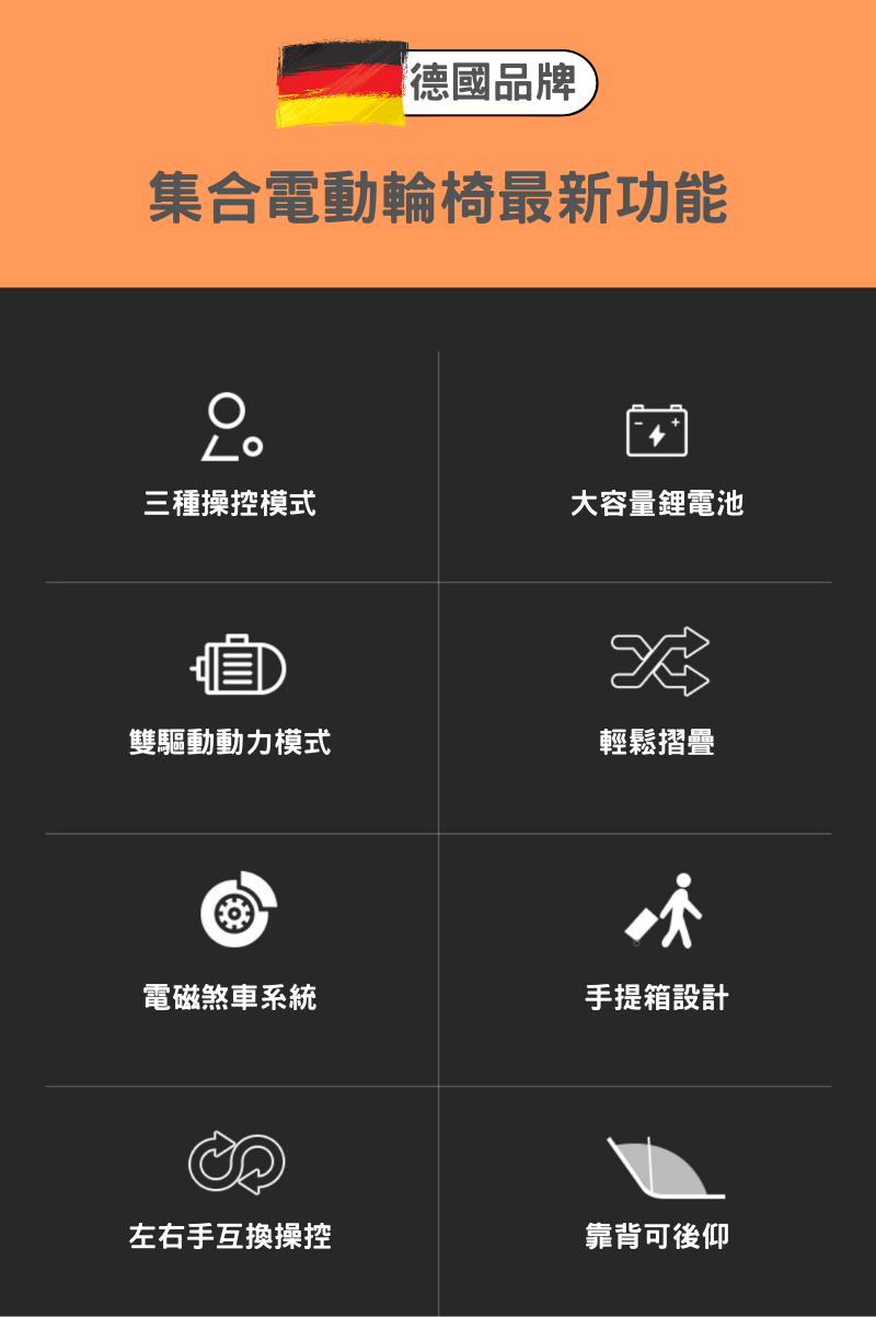 ● 驅動馬達系統:250W*2pcs,爬坡力度強,低噪音,強動力。