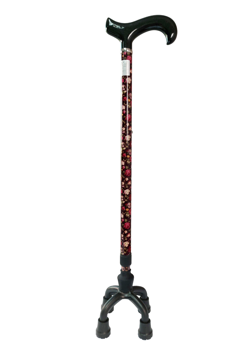 四爪設計,讓拐杖隨地站立,  讓使用者在用餐.休息.如廁時,  都能隨時伴立於身邊,避免置放困擾。