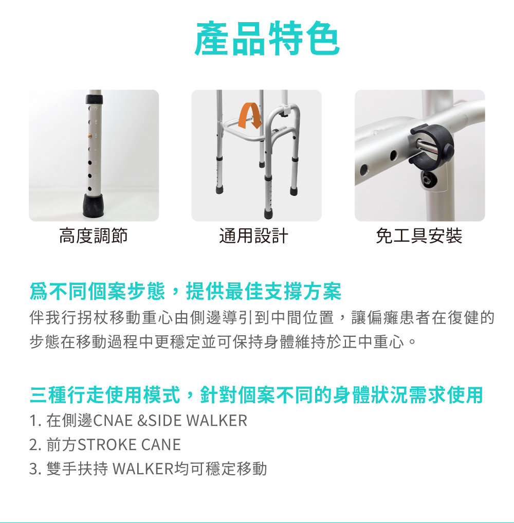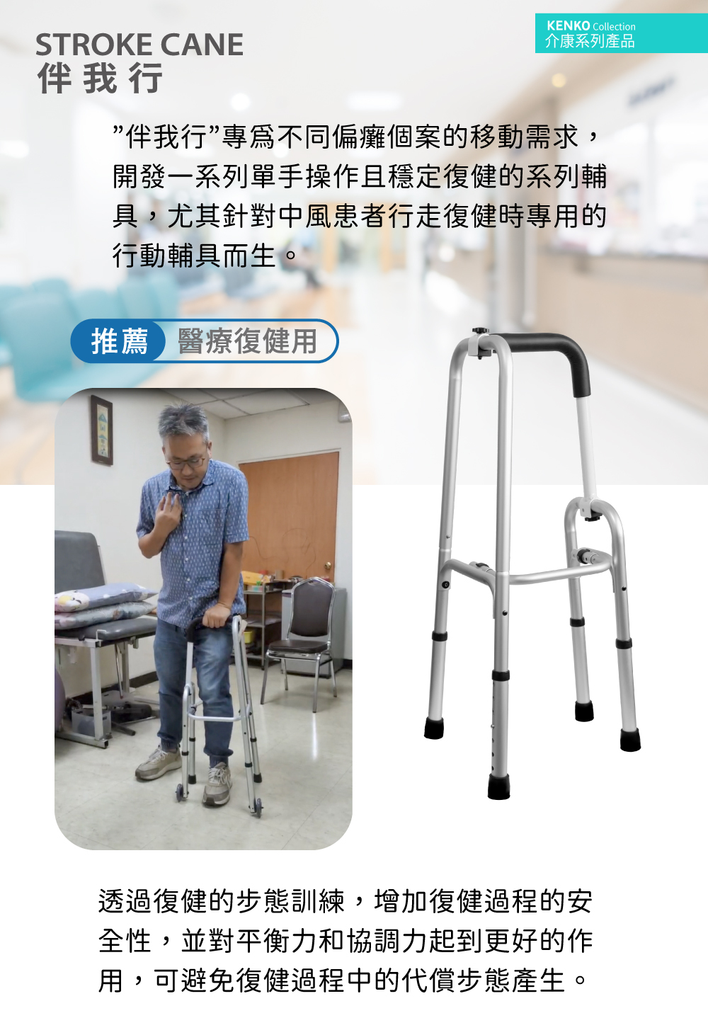– 適合中風偏癱後使用的助行器